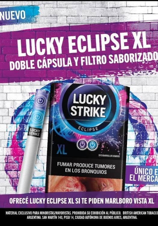 Lucky Strike: Salió una nueva presentación llamada "Eclipse" con dos cápsulas y filtro saborizado. Se vende en hard boxes con formato XL. (Lucky Strike)