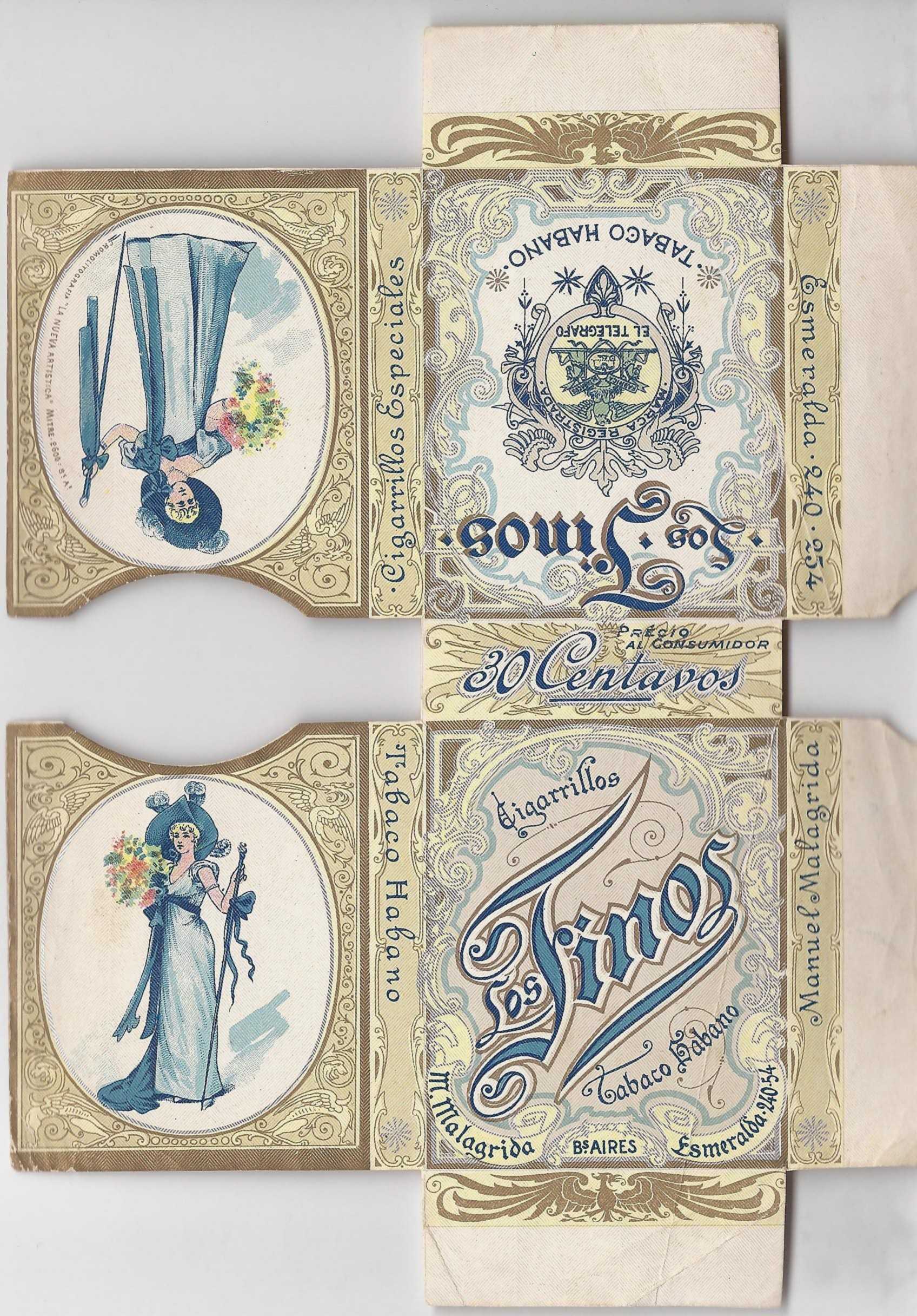 | Manuel Malagrida - La Invencible |   | Esmeralda 240-254 | Capital | 1881-1907 | Animal, Dandicito, Dandy, La Mar, Los Finos, Moltke tabaco, Moro, No, París, París en 1900, Parisien, Rusos, Si, Sorpresa, Sport, Virginia tabaco |
