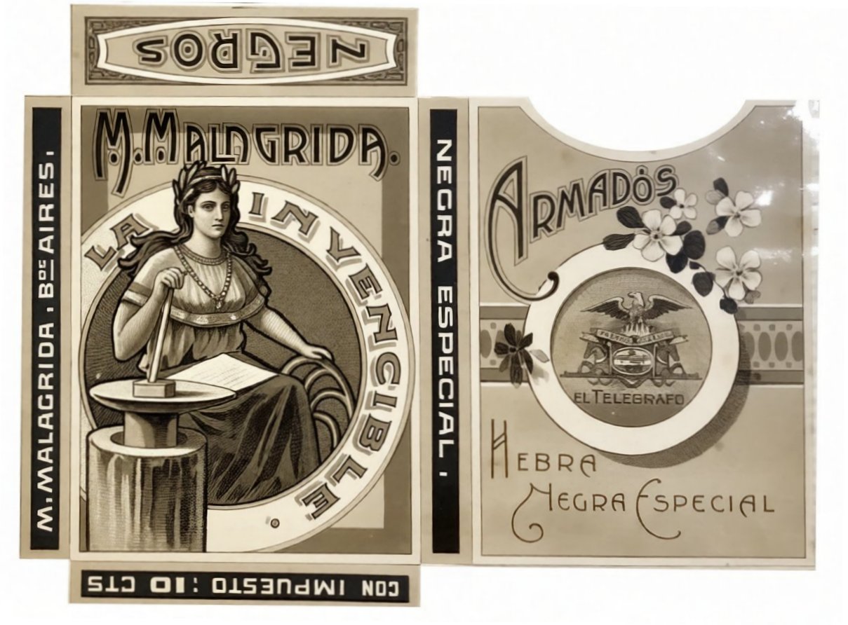 | Manuel Malagrida La Invencible - El Telégrafo |   | Esmeralda 240-254 | Capital | 1881-1907 | Animal, Dandicito, Dandy, El As de Oro Nº2, El As de Oro Nº 5, La Invencible negros, La Mar, Los Finos, Moltke tabaco, Moro, No, París, París en 1900, Parisien, Rusos, Si, Sorpresa, Sport, Virginia tabaco |